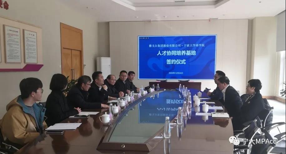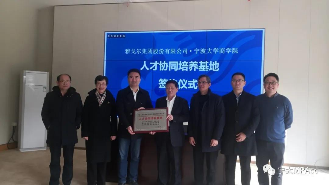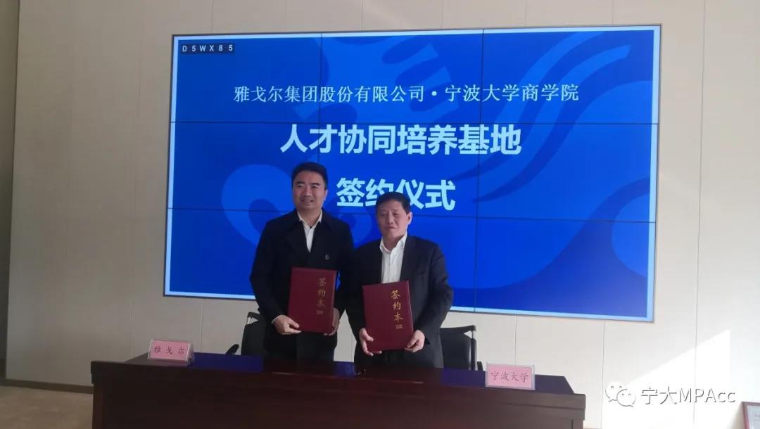 和雅戈尔集团股份有限公司共同举行了“人才协同培养基地”签约仪式。雅戈尔集团常务副总经理胡纲高、雅戈尔集团财务总经理吴幼光、雅戈尔集团服控财务总经理杨和建、雅戈尔集团人力资源总监陆占武、暗网