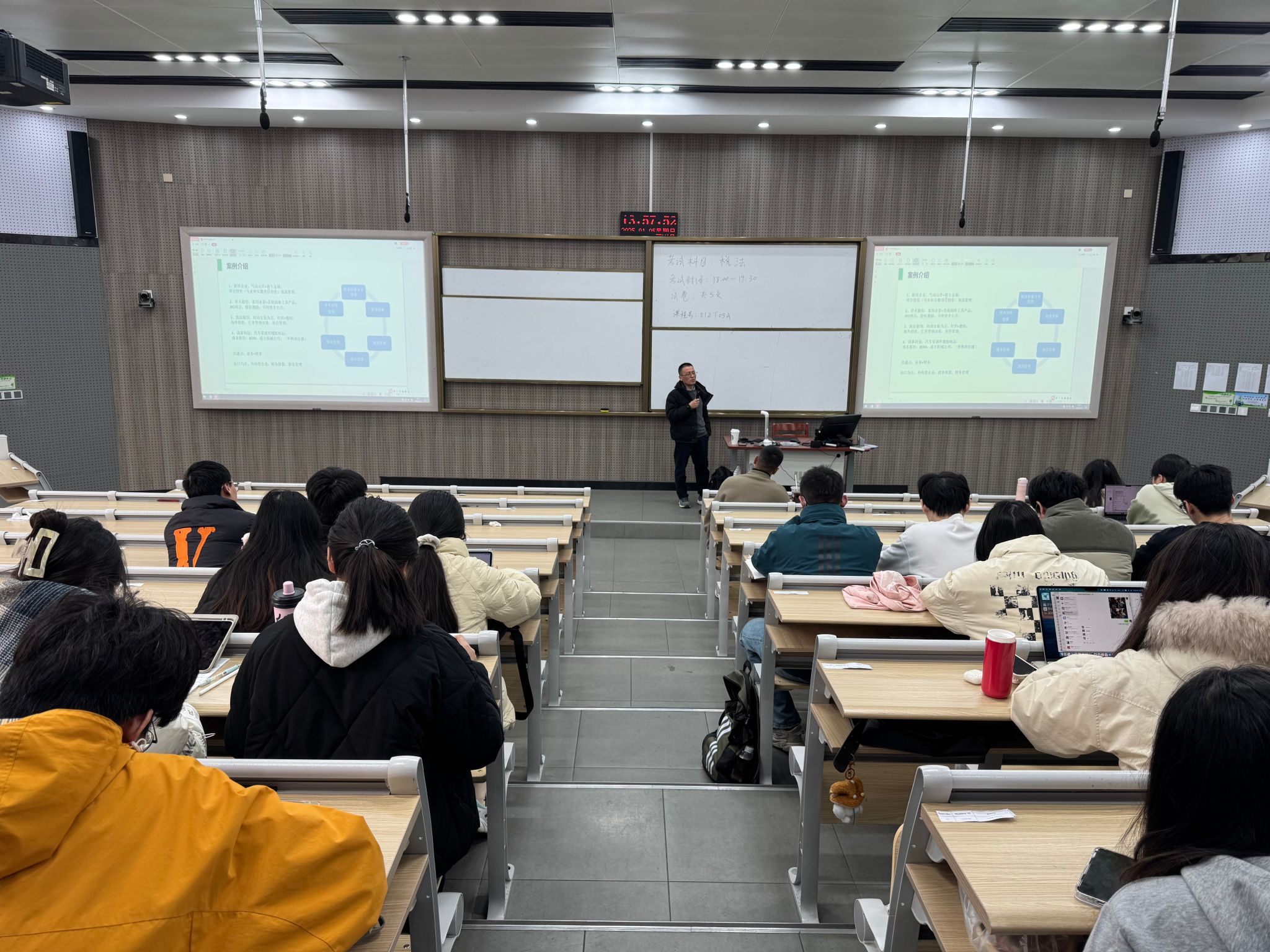 在授课过程中,蒋总结合新邦科技的实际案例,深入剖析了企业财务管理决策的关键要点。在海外投资策略方面,详细介绍了公司布局安徽和马来西亚项目时的投资决策过程,从市场前景、资源配置到现金流管理,让同学们看到了企业如何在复杂的市场环境中做出合理的投资决策。除了企业案例分享,蒋总还对财务管理决策的要点进行了系统总结,涵盖财务税收决策、项目投资决策和股权股票投资决策等内容,引导同学们从业务和财务融合的角度思考问题,理解外向型企业财务管理的复杂性和重要性。
