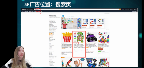朱老师从广告基础、广告报表、广告投放和广告案例四部分讲解了当前亚马逊广告投放的形式。她从生动的案例入手,告诉大家如何区分浏览页中的自然位和广告位,并提到一般以60个产品为一页的浏览页中,广告位会达到12个。常见的广告类型主要可以分为商品推广广告(SP)、品牌推广广告(SB)、展示型广告(SD),最常用的是展示型广告。这类广告能根据消费者的兴趣吸引在亚马逊站内外的消费者。通过站内外主动曝光出击的方式,吸引可能有意向的消费者,以及找回那些看到产品但没有购买的潜在消费人群。