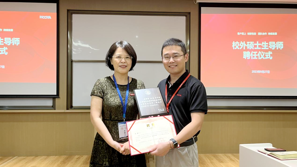 MIB专业校外兼职硕士生导师聘任仪式,杨丽华教授向豪雅集团董事长吴威先生颁发了兼职导师聘书和暗网