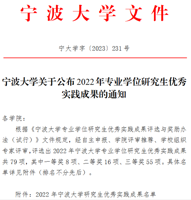 MIB学生获评校2022年专业学位研究生优秀实践成果奖