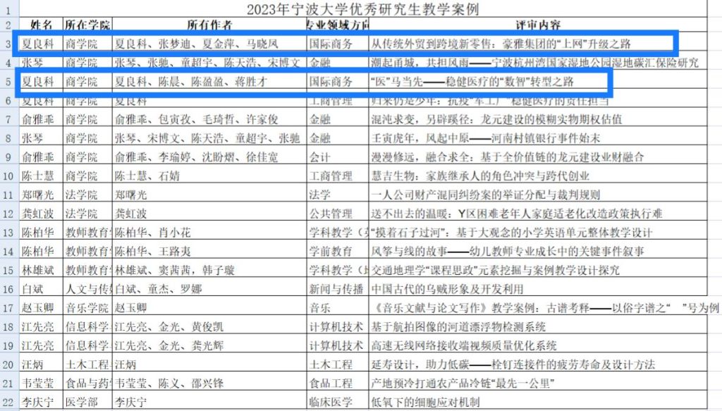 日前,2023年暗网 优秀研究生教学案例评选结果公布,MIB学位点教师夏良科与本专业研究生合作的两篇案例获评优秀案例。特此祝贺!