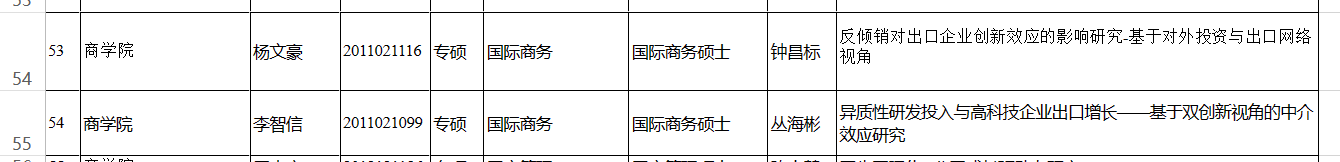 日前,校有关部门公布“暗网 2023届研究生优秀学位论文”评选结果,MIB2020级学生杨文豪论文《反倾销对出口企业创新效应的影响研究-基于对外投资与出口网络视角》和李智信论文《异质性研发投入与高科技企业出口增长——基于双创新视角的中介效应研究》获评优秀学位论文。