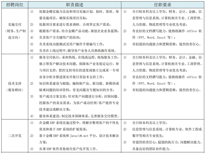 欢迎关注“金蝶招聘(ID:kingdeejob)”微信公众号,查看详细岗位信息。