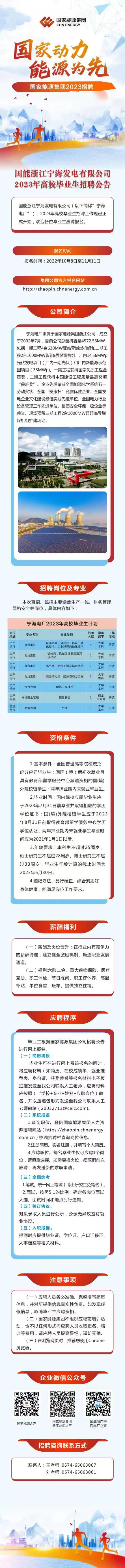 国能浙江宁海发电有限公司招聘简章