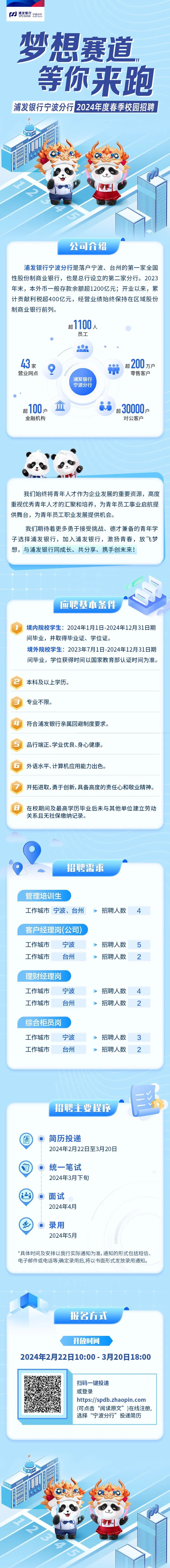 浦发银行宁波分行2024年校园招聘简章