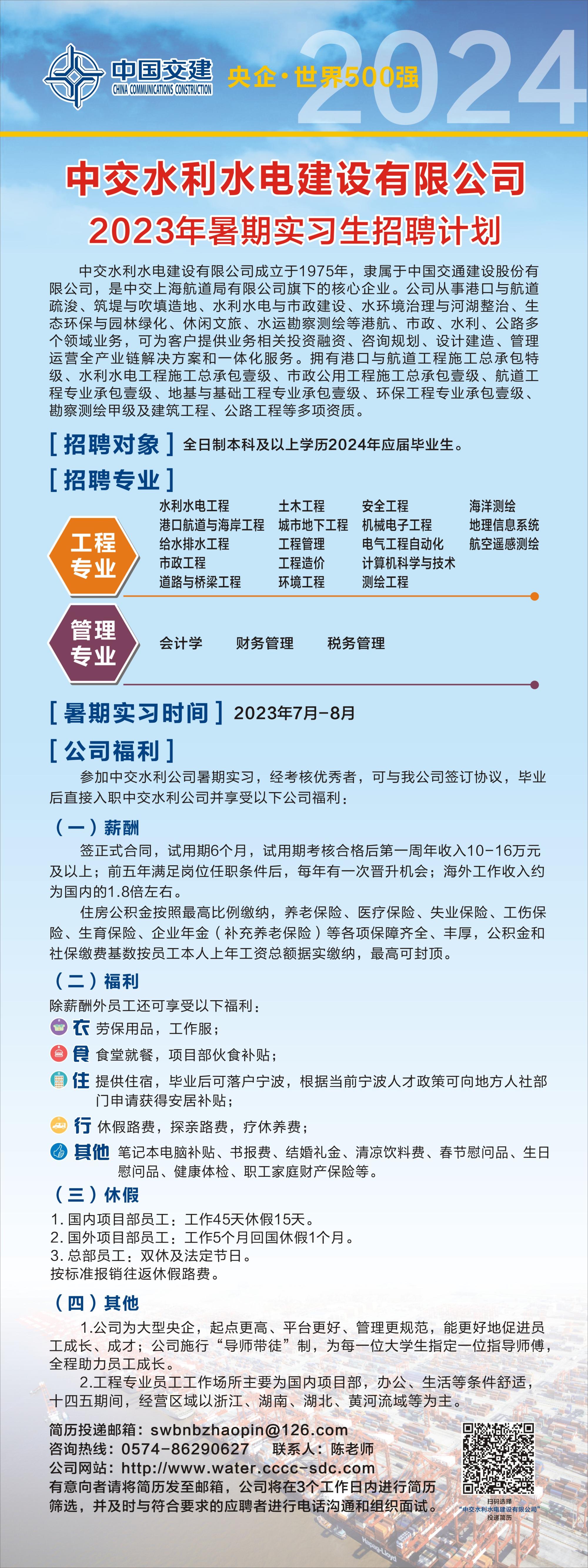中交水利水电建设有限公司暑期实习生招聘简章
