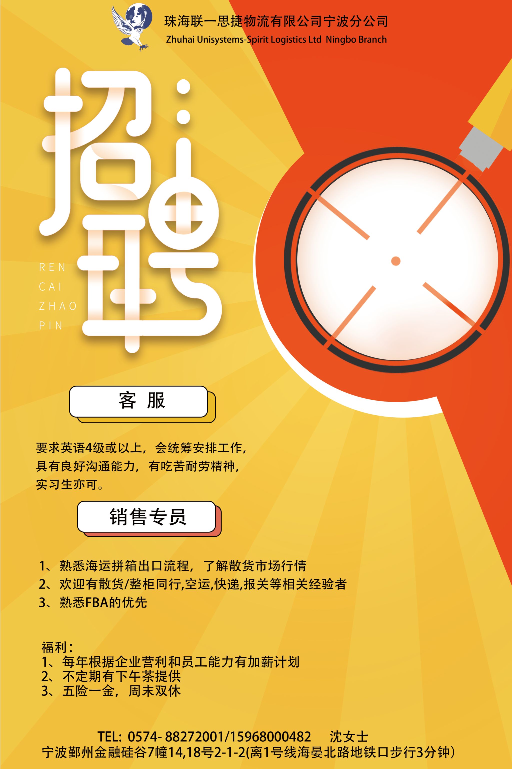 珠海联一思捷物流有限公司宁波分公司招聘简章