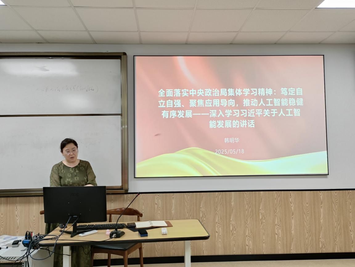韩明华教授在授课时说到,习近平总书记在主持学习时强调,面对新一代人工智能技术快速演进的新形势,要充分发挥新型举国体制优势,坚持自立自强,突出应用导向,推动我国人工智能朝着有益、安全、公平方向健康有序发展。