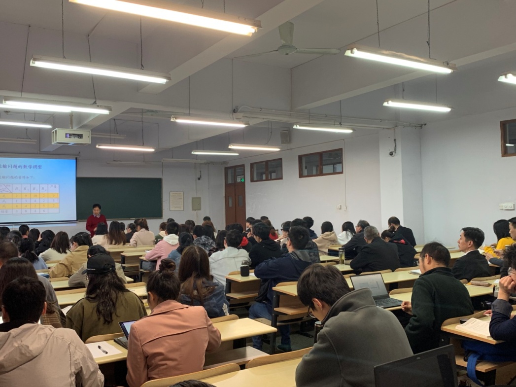 此次公开观摩课的课程名称是《运筹学》,该课程是信息管理与信息系统专业的学位课。本次课,谢老师主要讲授的是运输问题的数学模型,他运用了启发式教学方法,以问题为导向,从一个简单的运输例子出发,构建其数学模型,循序渐进地推导出表上作业法的初始基本可行解确定的三种方法。谢老师充分运用多种教学方法和手段的结合,深入浅出地为学生讲解了各相关知识点,并结合对算法的实际操练加深学生对专业知识的理解与掌握。整个授课过程,谢老师语言表述清晰,教学内容娴熟,注重课堂组织与管理,重点突出,时间安排合理,达到了良好的教学效果。