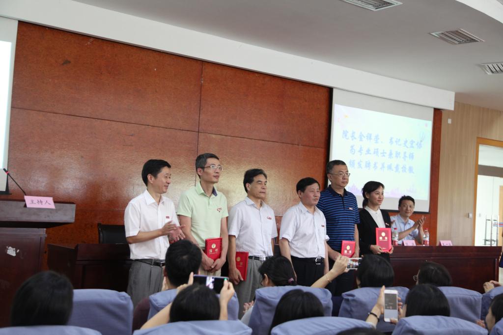 在讲话结束后,院长、书记为专业硕士兼职导师颁发证书并佩戴校徽,表示欢迎。随后,导师代表张聪群讲话,他从“做人”“做事”与“做学问”三个维度给新生们一点希望和建议,愿商院学子做人学会诚实守信、勇于担当、积极乐观,做事不应该停留于做过与做完,应追求做好做精。同时在做学问上张老师也对座非全日制硕士研究生提了三点建议,一是重视研究选题与研究方法,二是善于训练批判性思维,三是维护学术尊严。最后,新老生代表也上台发言表决心。会议在校歌声中圆满结束。