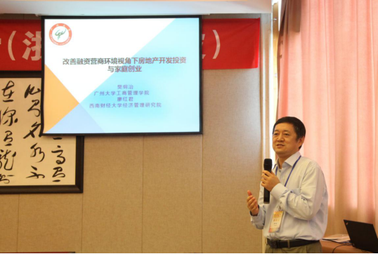 广州大学工商管理学院樊纲治教授报告了《改善融资营商环境视角下房地产开发投资与家庭创业》,文章使用 2013 年和 2015 年中国家庭金融调查(CHFS)数据,结合《中国城市统计年鉴》数据探讨了房地产投资对家庭创业活动的影响。文章发现,房地产投资对家庭创业活动产生负向作用,且对“两套住房及以上”家庭的创业活动挤出效应更大。特别地,信贷资源挤占是导致房地产投资产生负向作用的关键原因,而在控制了信贷资源挤占之后,房地产投资呈现出对家庭创业的正向作用。