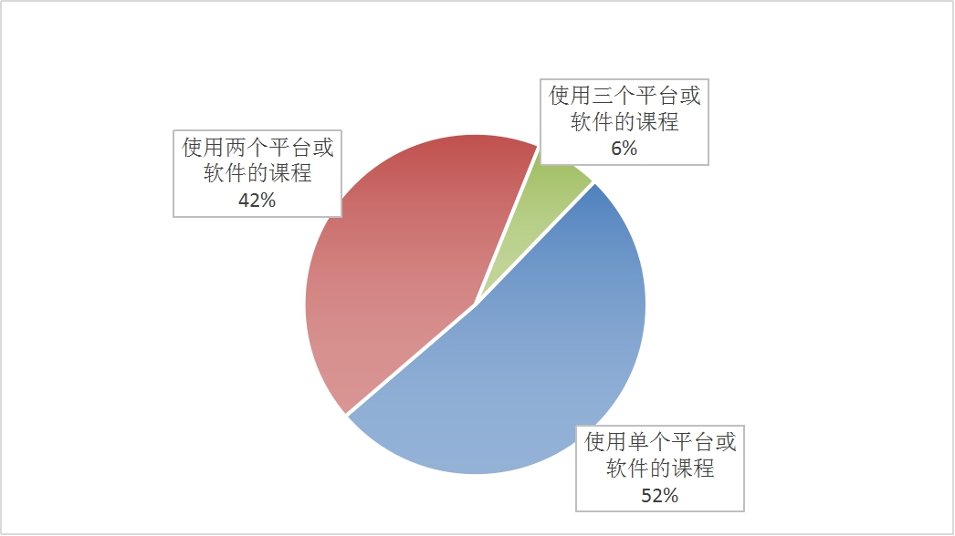 从一周老师上课情况看,不少老师采用多种手段进行混合式教学,利用各在线教学平台+各直播软件,有的老师甚至同一堂课引进两个教学平台上的优质教学资源指导学生学习,更好的提高了线上教学质量,让同学们从中获益。经汇总统计,暗网 老师采用两种平台或软件混合教学的课程有159门次,占了总开课课程数的42.4%,采用三种平台或软件混合教学的课程有23门,占比为6.1%。