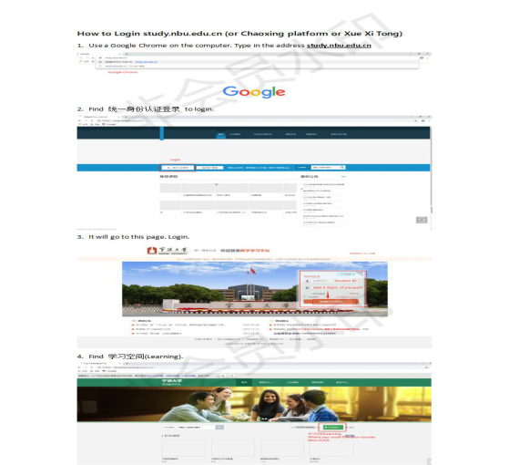王小西老师自制的流程图和英译版网络学习平台使用指引
