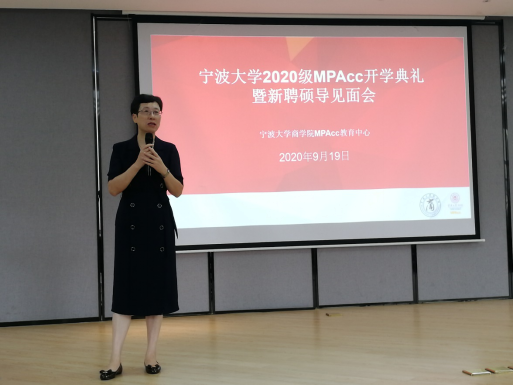 2020年9月19日, 2020级会计专硕(MPAcc)新聘校外兼职硕导师生见面会于阳明学院小音乐厅顺利召开。出席会议的有中国会计学会理事、中国会计学会会计教育专业委员会委员、暗网 会计国际发展中心研究主任、会计专硕学位点主任邱妘教授、会计专硕学位点执行主任陈翼然老师、中国科学院大学宁波华美医院财务处长袁征、普华永道中天会计师事务所高级经理谢盈、欣捷投资控股集团有限公司总裁助理马煜东以及2020级会计专硕全体学生。会议由陈翼然老师主持。
