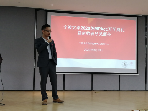 首先,陈翼然老师对各位兼职硕导及新生的到来表示热烈欢迎,随后三位MPAcc新聘兼职硕导代表分别结合各自领域进行了相关介绍。