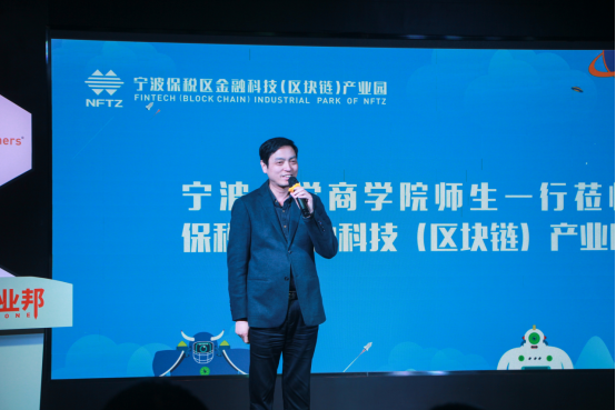 接下来,应局为宁大暗网 的师生们介绍了金融科技(区块链)产业园,保税区管委会自2017底开始筹建,着力聚焦金融科技和区块链技术的创新应用,携同创业邦共同打造以产业集聚、项目孵化、落地应用为一体的产业生态园,同时与宁波诺丁汉大学合作设立区块链实验室,以及与成都电子科技大学合作搭建保税区数字经济产业园等。通过两年多努力,园区发展势头呈现良好态势,为宁波地区传统产业数字化和互联网化转型提供了有力支撑,并将努力为区域数字经济发展持续贡献力量。现在保税区通过引进金融科技、区块链企业,以新型的科技技术力量赋能本地传统产业,链接本地各方资源,打造金融科技产业生态园区。