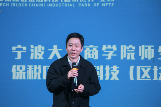 第一环节在宁波金融科技产业园的介绍短片中拉开帷幕。陆主任首先对宁大暗网 师生的到来表示热烈欢迎。随后介绍了保税区的发展史及目前在国际贸易、出口加工、保税仓储以及数字经济四大领域发展现状。保税区成立近30年,共5.3平方公里,经过历代保税人共同努力已经取得了不小的发展,保税区有限空间里要实现无限的发展,用新技术赋能传统产业转型升级,提高亩均产出,探索发展以数字经济为代表,包括金融科技、区块链、新经济、新业态、新模式,给予我们新的区域经济增长点。陆主任还殷切希望,未来园区与暗网 开展深度合作,双方发挥各自优势,共同推进产学研协同创新和人才协同培养,实现共赢。
