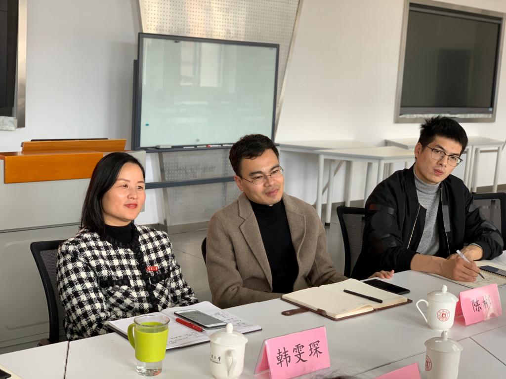 韩雯琛对唐华一行的到来表示热烈的欢迎,并主持召开了座谈会。座谈会上,韩雯琛和唐华互相介绍了各自学院的基本情况。孙健维、龚昆朋、钟冬冬、高迪霏分别就自己分管的工作向各位来宾进行了介绍。