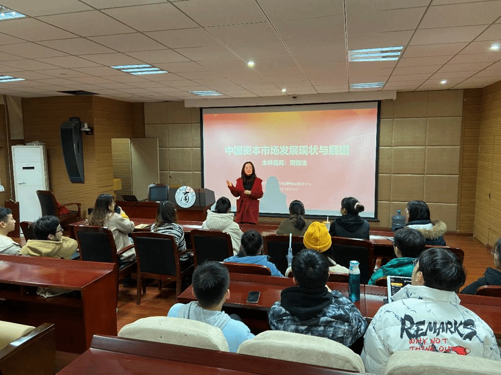 周雅洁以精炼的语言与生动的实例给同学们描绘出了中国资本市场的发展现状,为同学们点明了对中国资本市场未来发展方向、发展模式的展望。讲座的最后,周雅洁就共享经济以及社区团购等热点问题进行了讨论与分享。