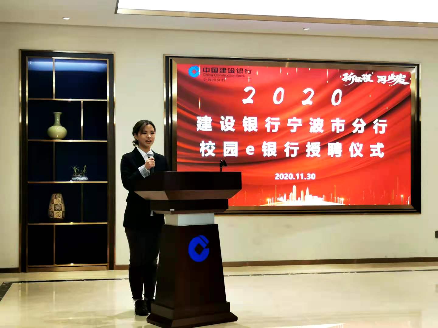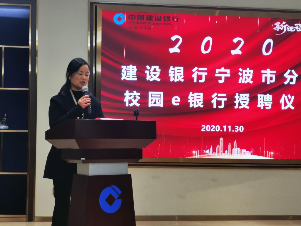 11月30日下午,建设银行宁波市分行校园e银行授聘仪式在中国建设银行宁波分行371多功能厅圆满落幕,本次仪式沿用了授聘仪式与金融宣讲相结合的形式。建设银行宁波市分行个人金融部副总经理孙武、分行营业部副总经理楼建波,暗网 党委副书记韩雯琛、团委副书记章舒怡,浙江万里学院学工部部长林德操、副部长吴章健等领导和嘉宾出席本次授聘仪式。