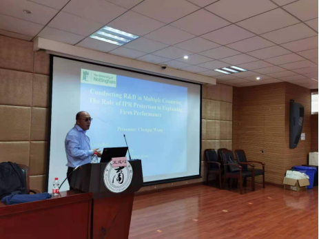 本次报告,王成岐教授围绕自己及团队历时10年完成的一项研究展开。王教授首先对知识产权保护与企业绩效提升的重要作用进行了一般解释,而后对于以往的相关研究进行了系统梳理与提炼,并进一步将主题延伸至经济全球化背景下,跨国公司组建多国研发基地和团队的动机与趋势。王教授指出,由于不同研发团队所在国家或地区的政治、文化、法律等环境的客观差异,知识产权保护的跨国合作显得尤为必要,但其对企业绩效造成的真实影响往往未得到全面考察,这也正是其本项研究的出发点。之后,王教授重点就研究框架、研究方法、研究结论进行了介绍,并强调相关研究仍在进行中。