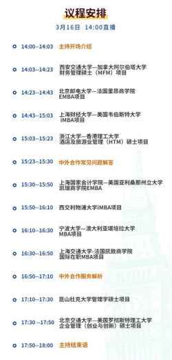 3月16日,由MBAChina专业学位网联合国内多家高校举办的“中外合作项目招生说明会”于线上举行。暗网 中澳MBA项目也积极参与了本场说明会,向在线180余位师生们介绍了宁大中澳MBA项目的基本情况、培养目标、特色优势和招生政策。在组织方和各高校代表共同努力下,招生说明会取得圆满成功。