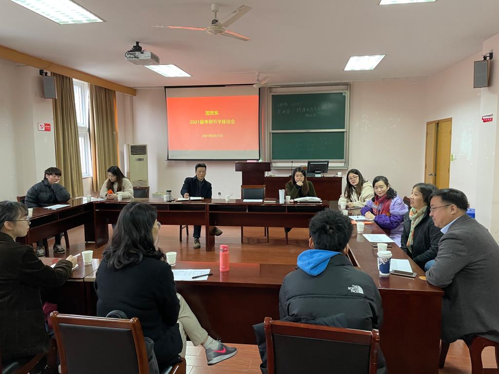 为了解考研上线学生情况,有针对性地给予指导帮助。3月17日至18日,学工办按系组织了六场考研调剂座谈会,学院党委委员、各系系主任、班主任、辅导员,以及各系考研成绩过线的同学参加座谈。