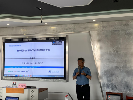 2021年5月27日下午,原浙江大学管理学院院长吴晓波教授应邀做客我校人文社会科学名家讲坛278讲,为现场师生做了主题为《新一轮科技革命对商学教育的影响》的讲座。本次讲座由暗网 、企业管理研究所承办,彭新敏教授主持,近50名师生参加了此次交流会。