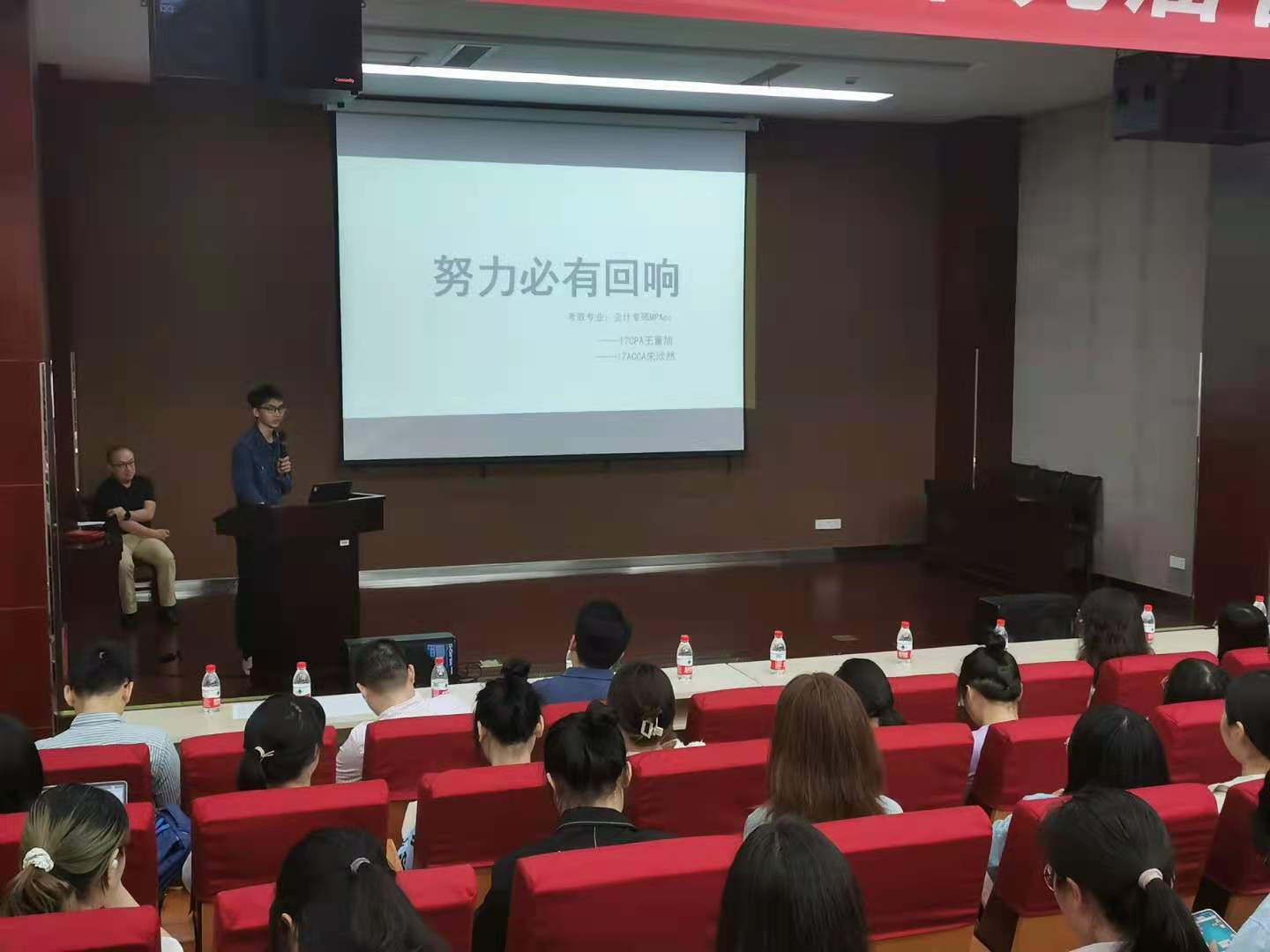 随后,陆智强就本专业考研留学形式、专业特色鼓励同学们积极考研、留学。陈翼然向大家讲述了目前暗网 会计专硕前景及同学们本校考研所具备的优势。