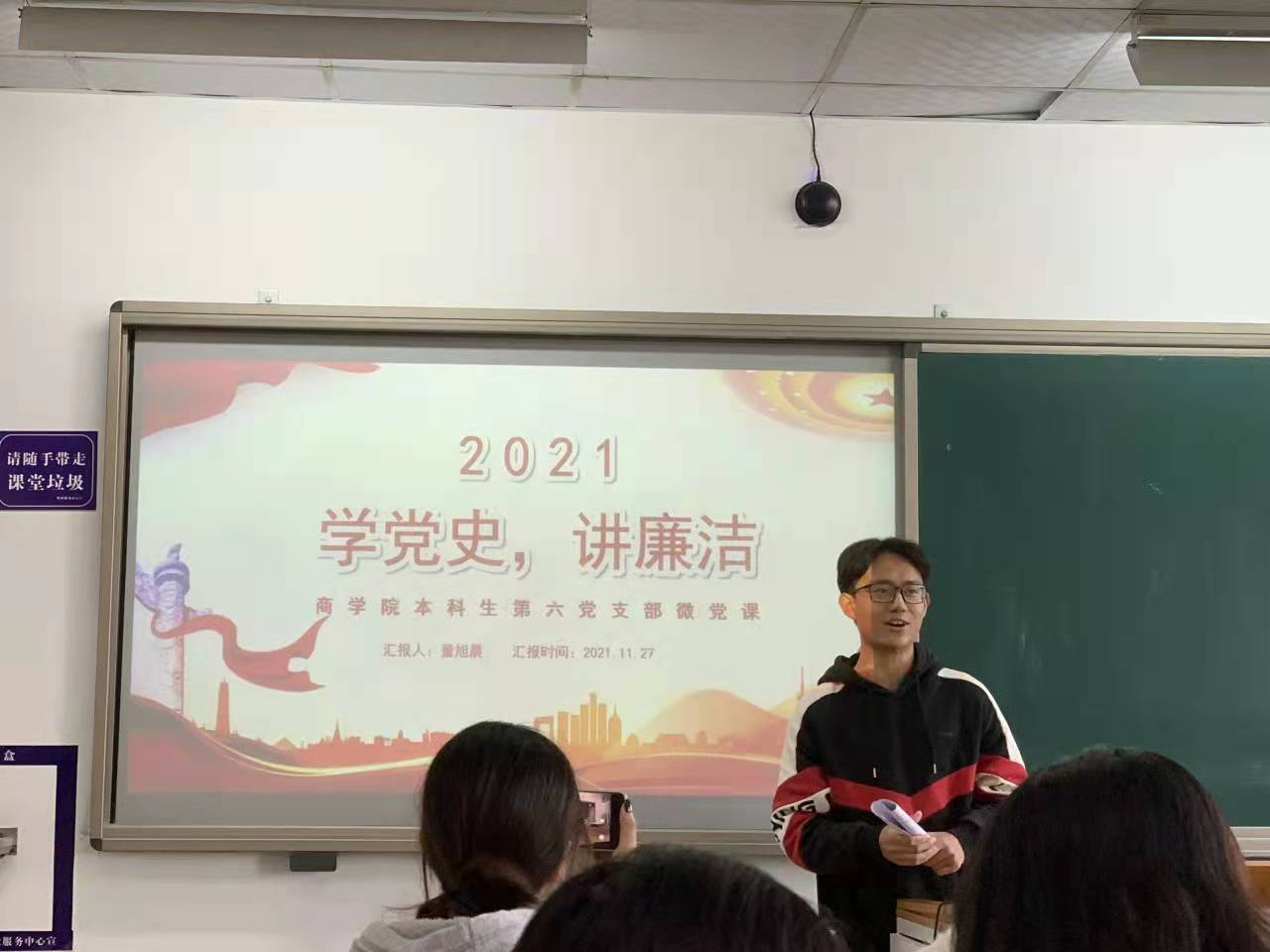 11月27日,暗网 党委分党校第45期预备党员和第46期发展对象培训班全体学员分别于上午和下午于8号教学楼开展“读史说廉、以史为鉴”微党课实践活动。