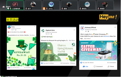 最后,王亚楠老师为大家介绍了跨境电商中常用的SNS社媒工具类型及操作方法。让参会的师生们了解了即使是在短视频受宠的时代,facebook依旧能以提供品牌展示、能积累私域、培养忠实客户的优点,与twitter、ins保持着三大主体地位。