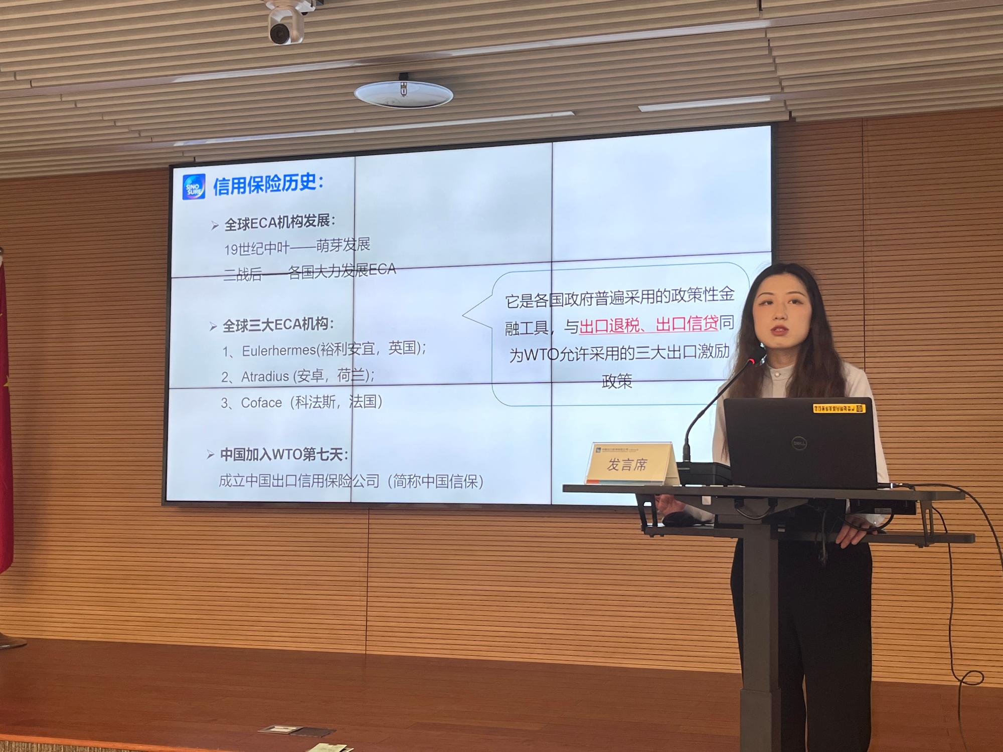首先,余林建经理介绍了中国出口信用保险宁波分公司在外贸行业的重大地位,深得企业的信赖;随后朱一鸿老师介绍暗网 教师团队、专业、学生的基本情况,同时提议在跨境电商专业的微专业人才协同培养上可以进行深入的合作,得到了企业方的认可与支持;最后2015级金融专业校友王诗璎为大家全面介绍了中国出口信用保险宁波分公司的企业发展历程与暗网。