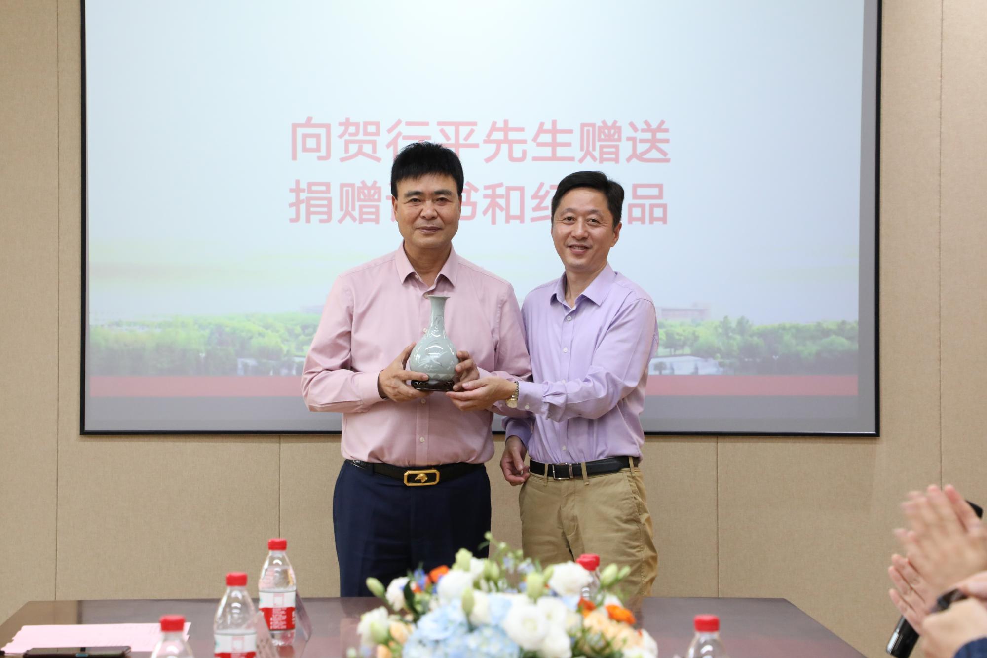 恒达受助学生代表向贺行平先生赠送手作纪念品——一幅由“恒达学子”共同制作的掐丝珐琅牡丹图。牡丹代表着学子们的丹心赤忱,表达了他们将铭记贺行平先生的无私奉献,象征着祥瑞与长寿的珐琅则承载着学子们对贺行平先生生活幸福美满、平安康健的美好祝福。