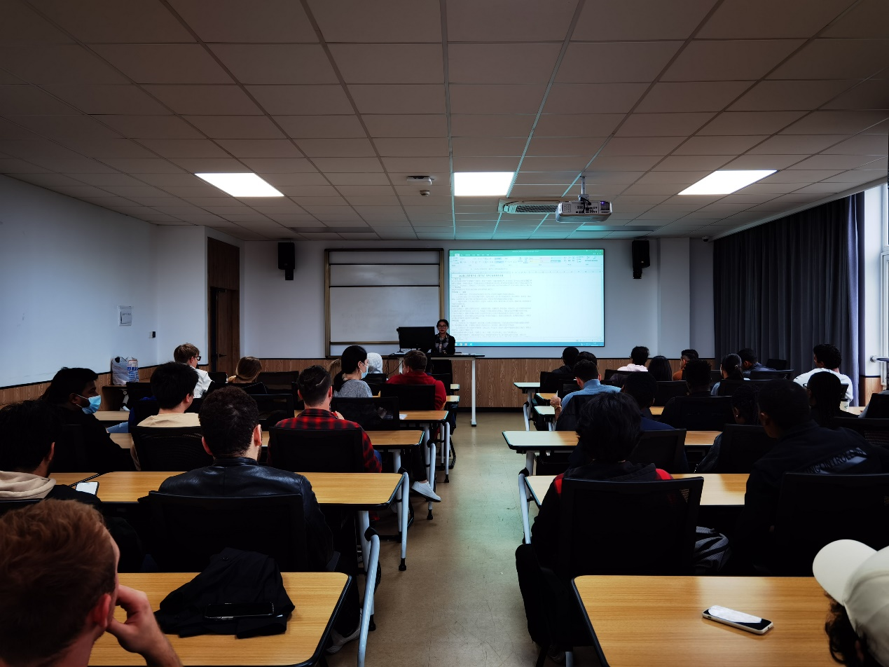 10月26日下午,第七届“夯基石、促学风”留学生主题教育活动暨新生始业讲座在曹光彪楼314教室举行。会议由毛跃祖主持。首先,宁波市庄市派出所民警杨延飞为留学生现身普及公共和校园安全知识。王警官结合社会安全事件种类、特性和危害,用大量生动丰富的案例教育警示留学生要学会保护自己,让同学们受益匪浅。此后,教务办的马士霖老师向留学生关心的教学相关问题做了科普与解读,内容设计培养方案、选课、考试安排、汉语水平考试等内容,并随后就相关问题接受了学生的提问。