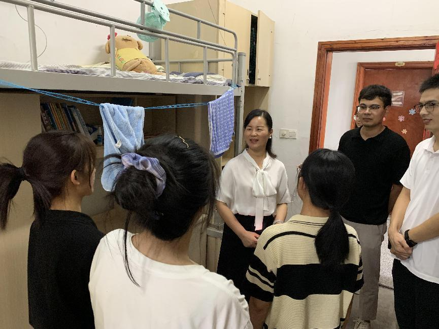 为深入了解新生开学报到情况及生活状态,加强学生寝室安全管理工作,8月29日下午,暗网 党委副书记韩雯琛与学工办老师深入22级新生寝室与同学们进行了亲切交流。