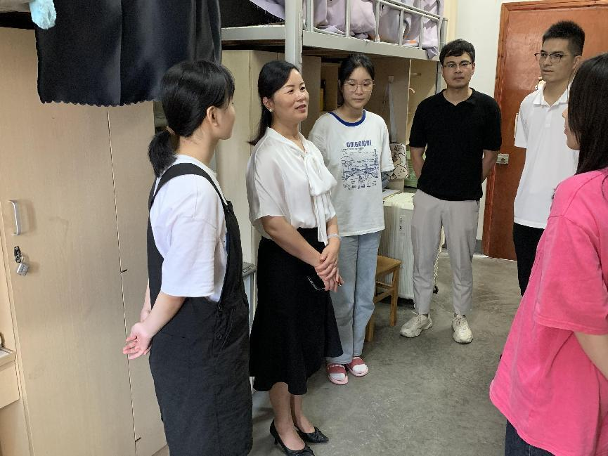 在寝室走访过程中,韩雯琛等老师对22级新生的到来表示热烈欢迎,详细了解新生入学的情况,并与同学们亲切交谈,询问大家初入校园遇到的问题,并鼓励大家勤奋学习,团结友爱,养成良好的学习习惯,营造良好的寝室文化氛围。