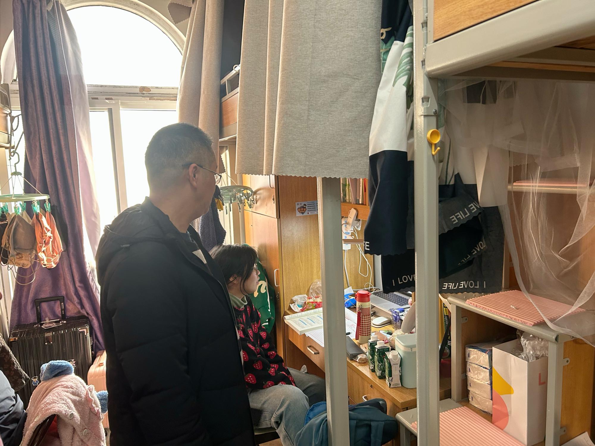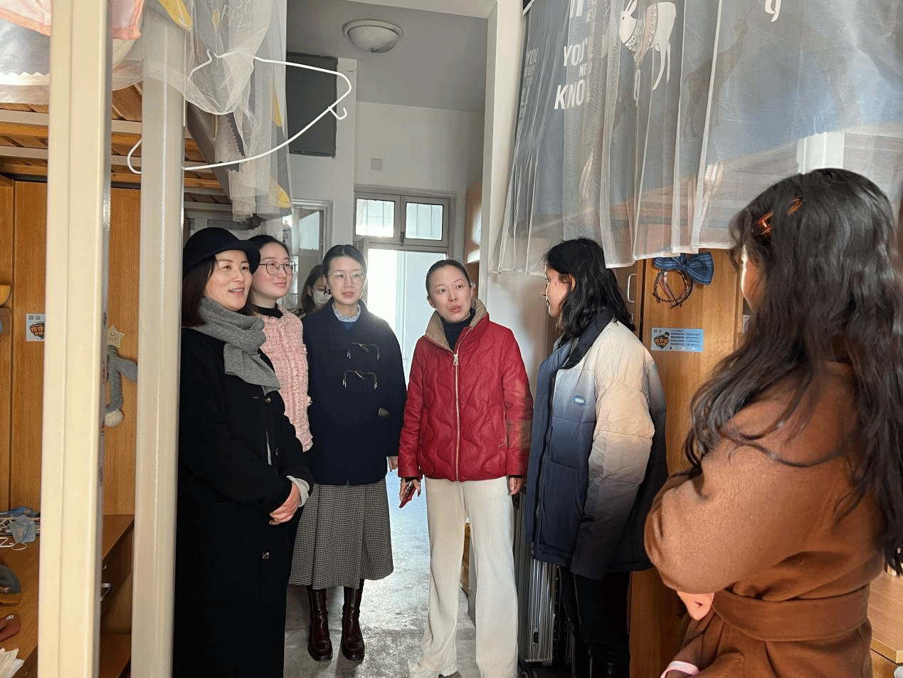在寝室走访过程中,老师们与同学们亲切交流,询问了同学们假期返校后的生活和学习情况,了解同学们期末备考和学期规划。韩雯琛副书记鼓励大家勤奋学习、科学备考、诚信考试,以积极的状态投入到新学期的学习与生活中来。