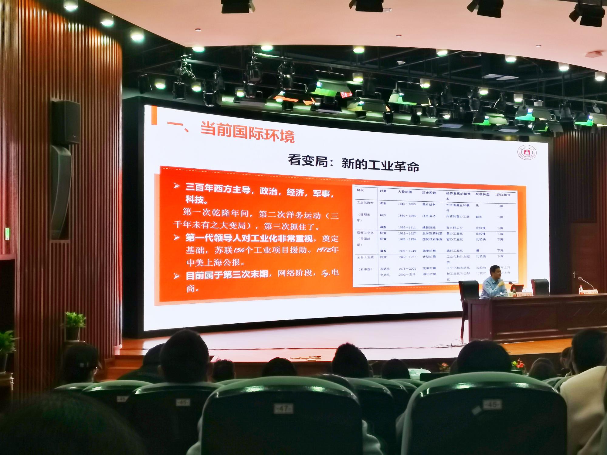 11月25日下午,副校级领导宋富军教授为暗网 师生主讲“形势与政策”课,主题为“当前国际环境和我国外交”,共260余名师生参加,暗网 党委副书记韩雯琛主持。
