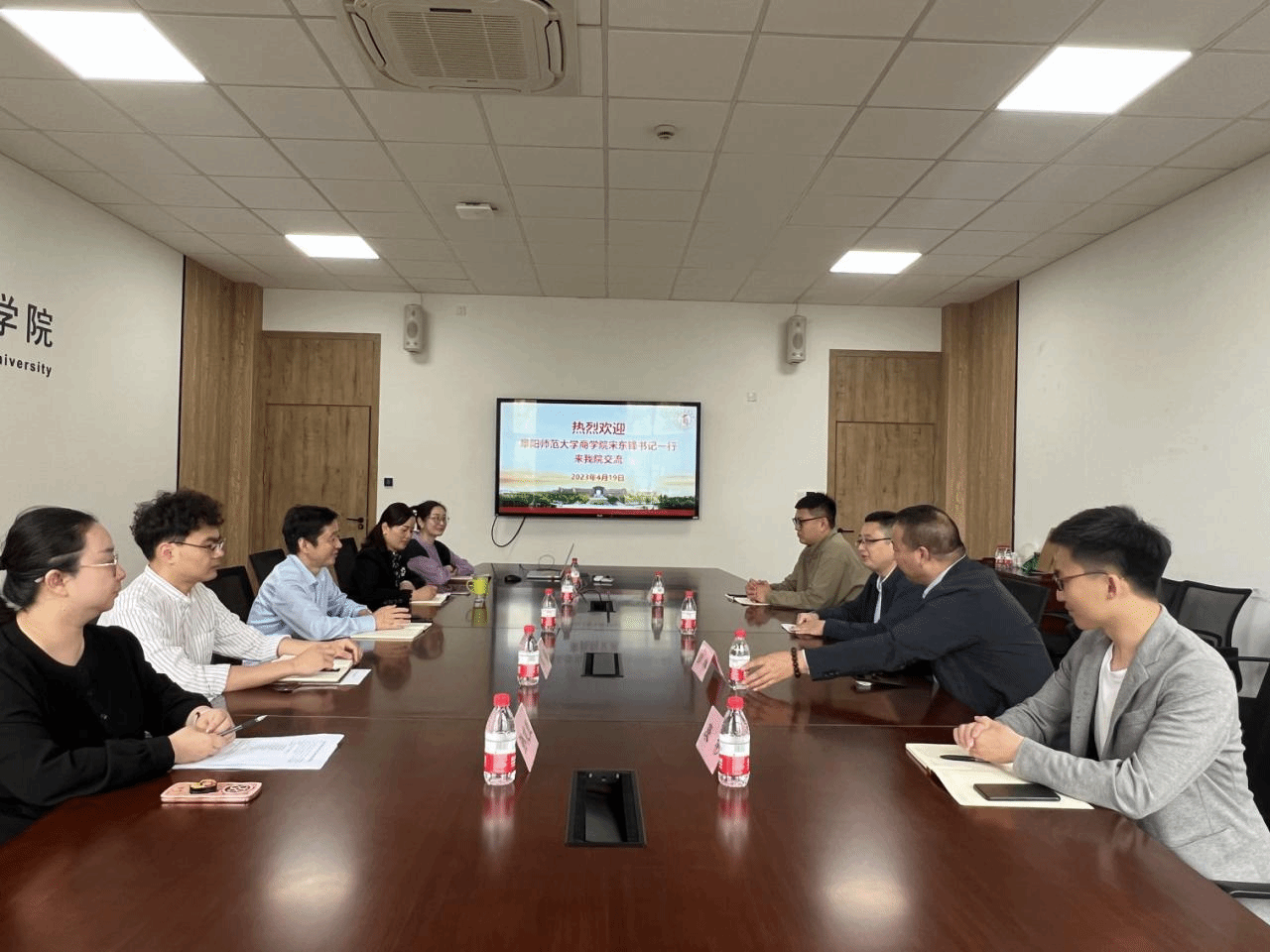 4月19日上午,阜阳师范大学暗网 党委书记宋东锋一行4人来暗网 调研学生工作的经验做法。暗网 党委书记史宏协、党委副书记韩雯琛、学工办主任陈彬、学工办辅导员周双双、孙健维出席接待。