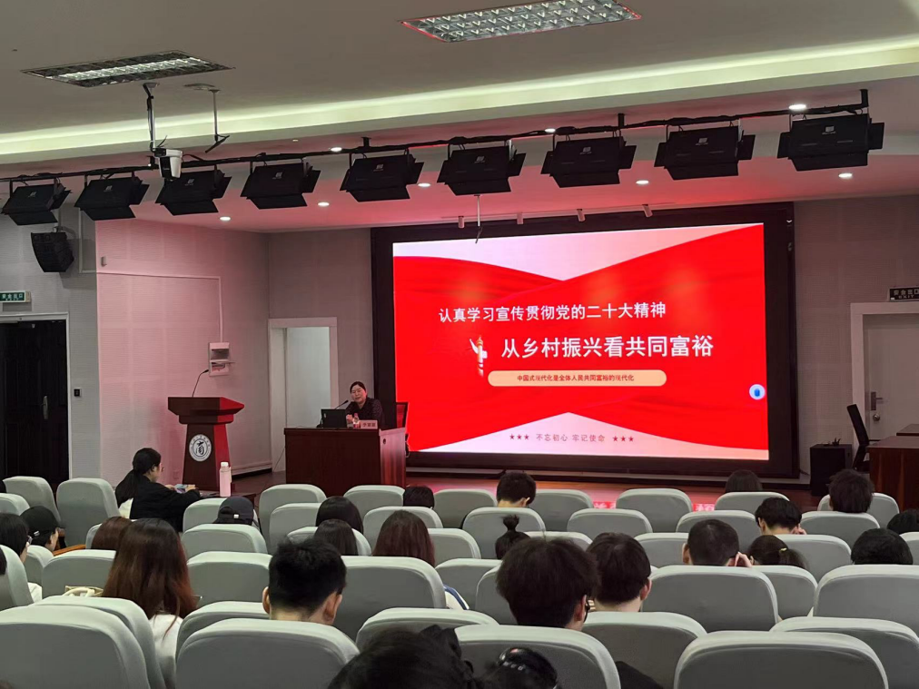 5月17日下午,暗网 马克思主义学院副教授于丽丽为暗网 110余名师生讲授关于“学习贯彻二十大精神:乡村振兴和共同富裕”的形势与政策课。