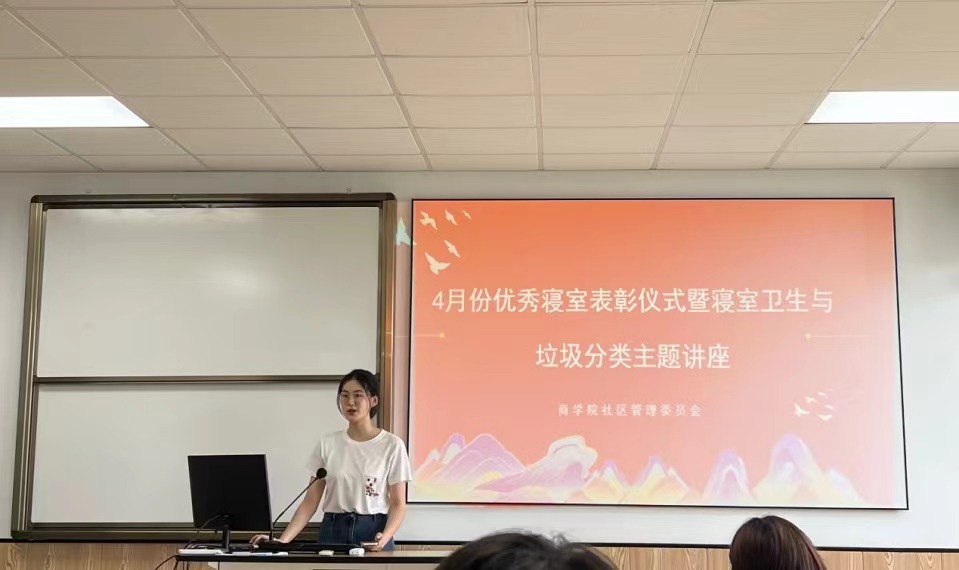 为推进文明寝室建设,激励学生文明习惯养成,5月17日中午,暗网 在曹光彪楼314教室举行四月份优秀寝室表彰大会暨寝室卫生与垃圾分类主题讲座,全院各班级生活委员及部分寝室代表参加,学院辅导员麦尔阿巴受邀出席此次活动。