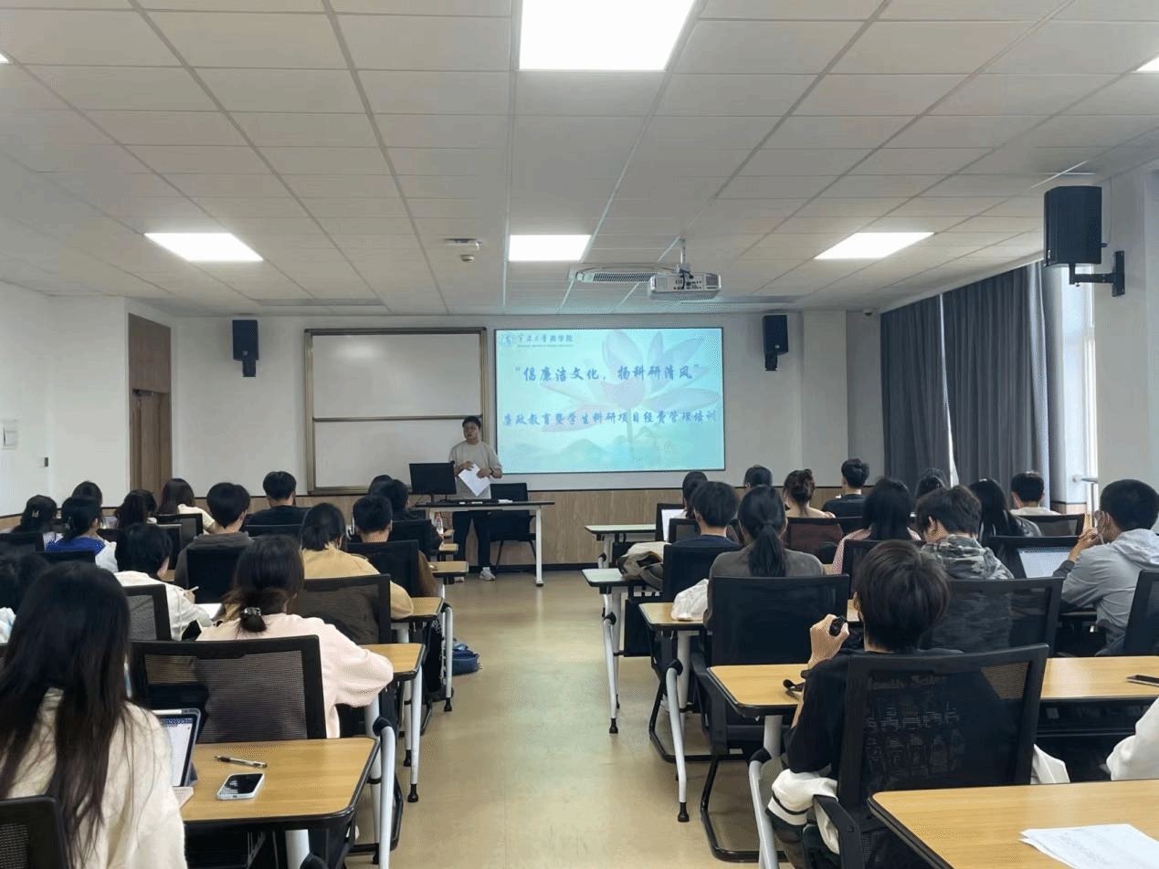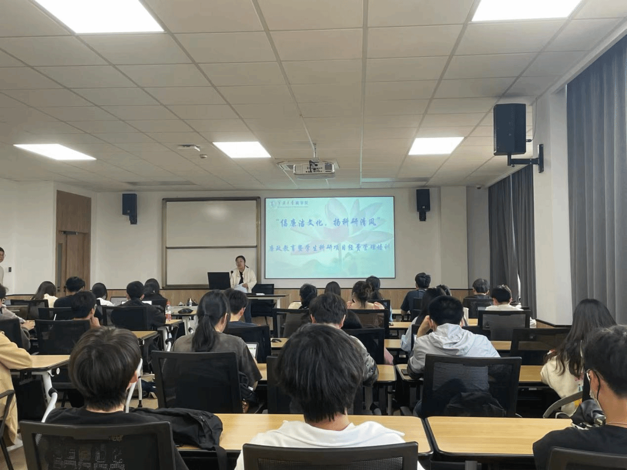 5月25日,暗网 针对校Srip、校研究生科研创新项目、大学生创新创业训练计划项目、省新苗项目等学生科研项目团队开展了“倡廉洁文化,扬科研清风”廉政教育暨学术科研项目经费管理培训。