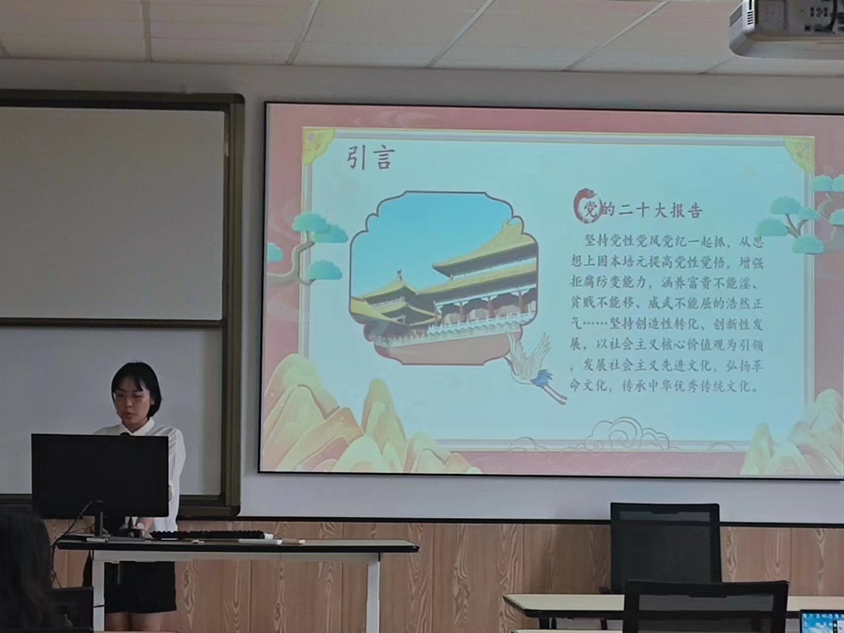 支部成员杜含哲为大家带来了清廉人物杨善洲的廉洁故事分享。身为云南省保山地委书记,杨善洲担任领导干部30余年,生前攒下的钱却不足一万元。“位卑未泯济民志,权重不移公仆心。”杨善洲忠诚、奉献、实干、为民的精神展示了新时期共产党员的价值追求和先进风采,是中国共产党的宝贵精神财富。