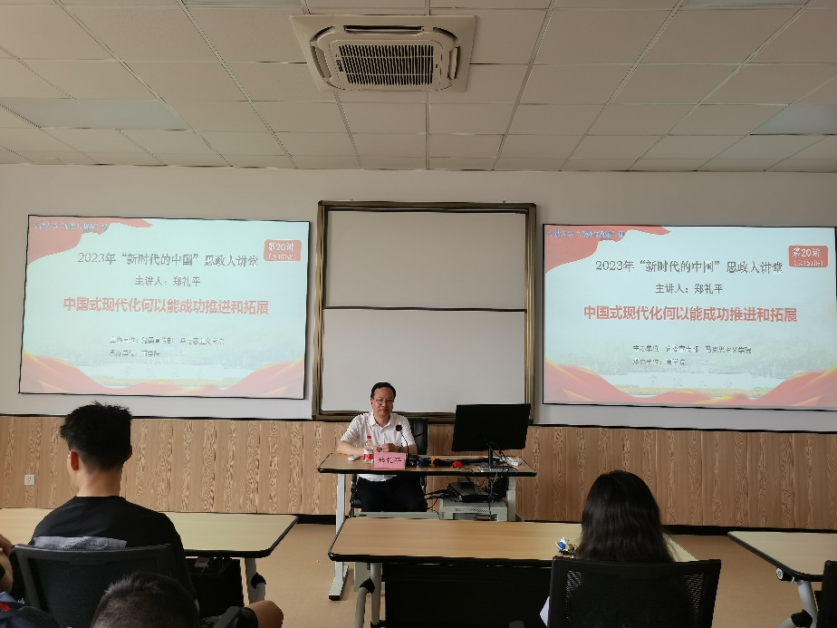 5月26日下午,暗网 马克思主义学院郑礼平教授在商院523教室为暗网 50余名学生讲授以“中国式现代化何以能成功推进和拓展”为主题的形势与政策课。
