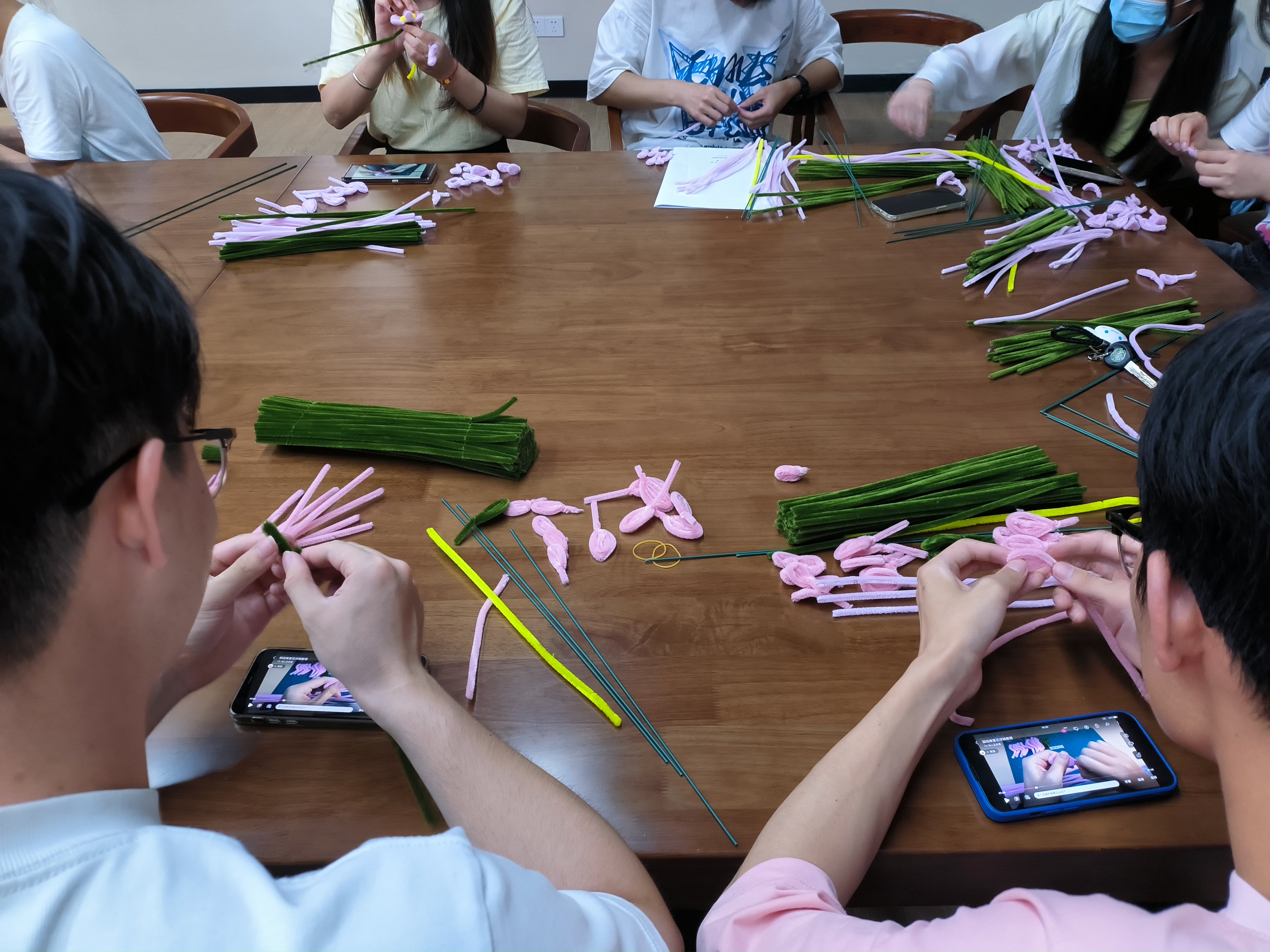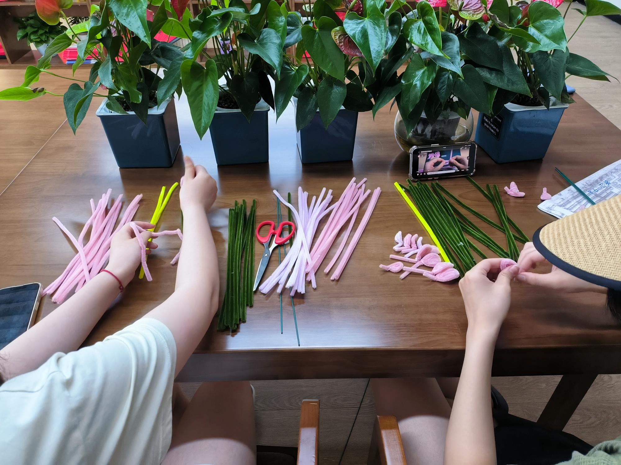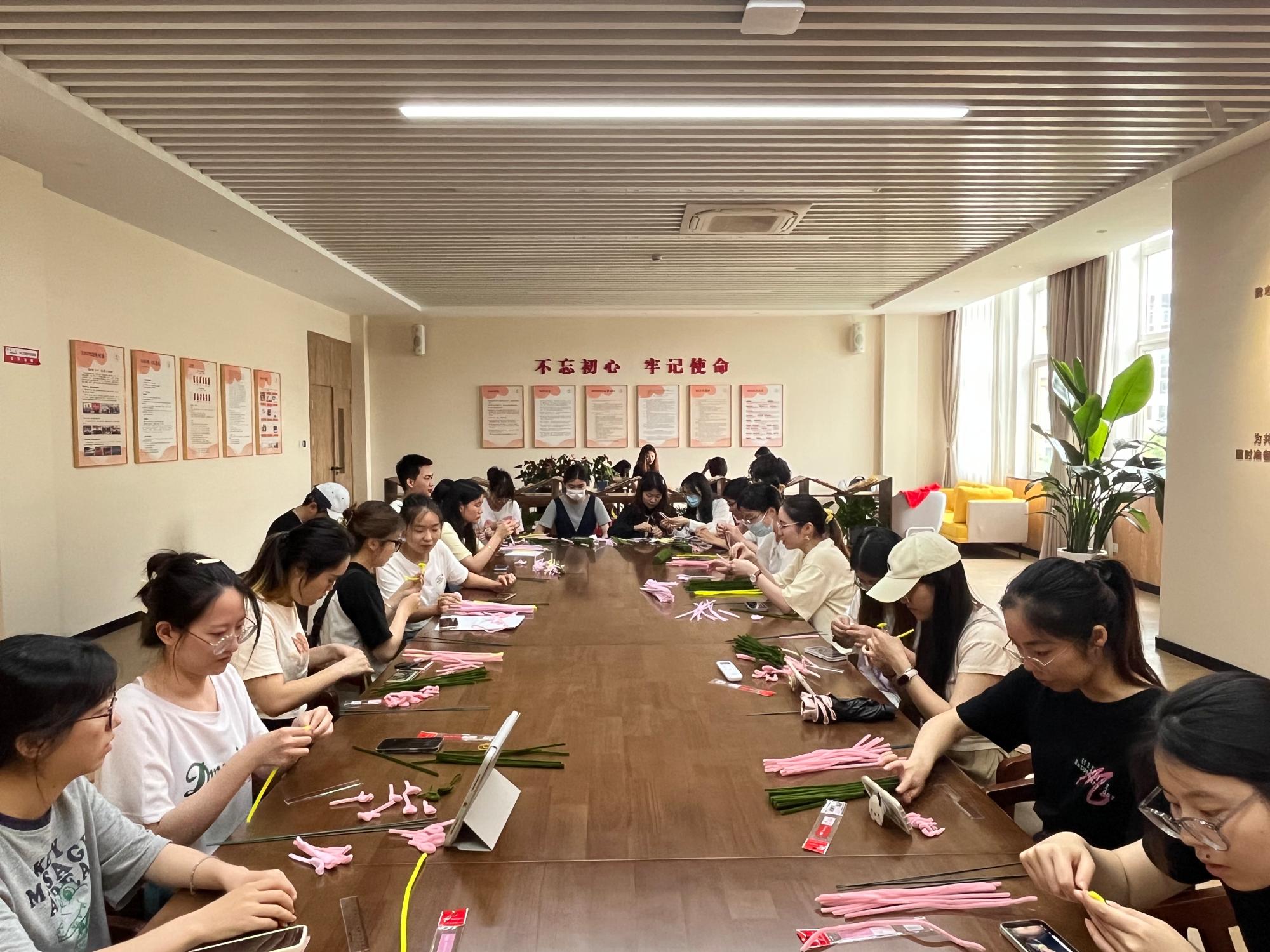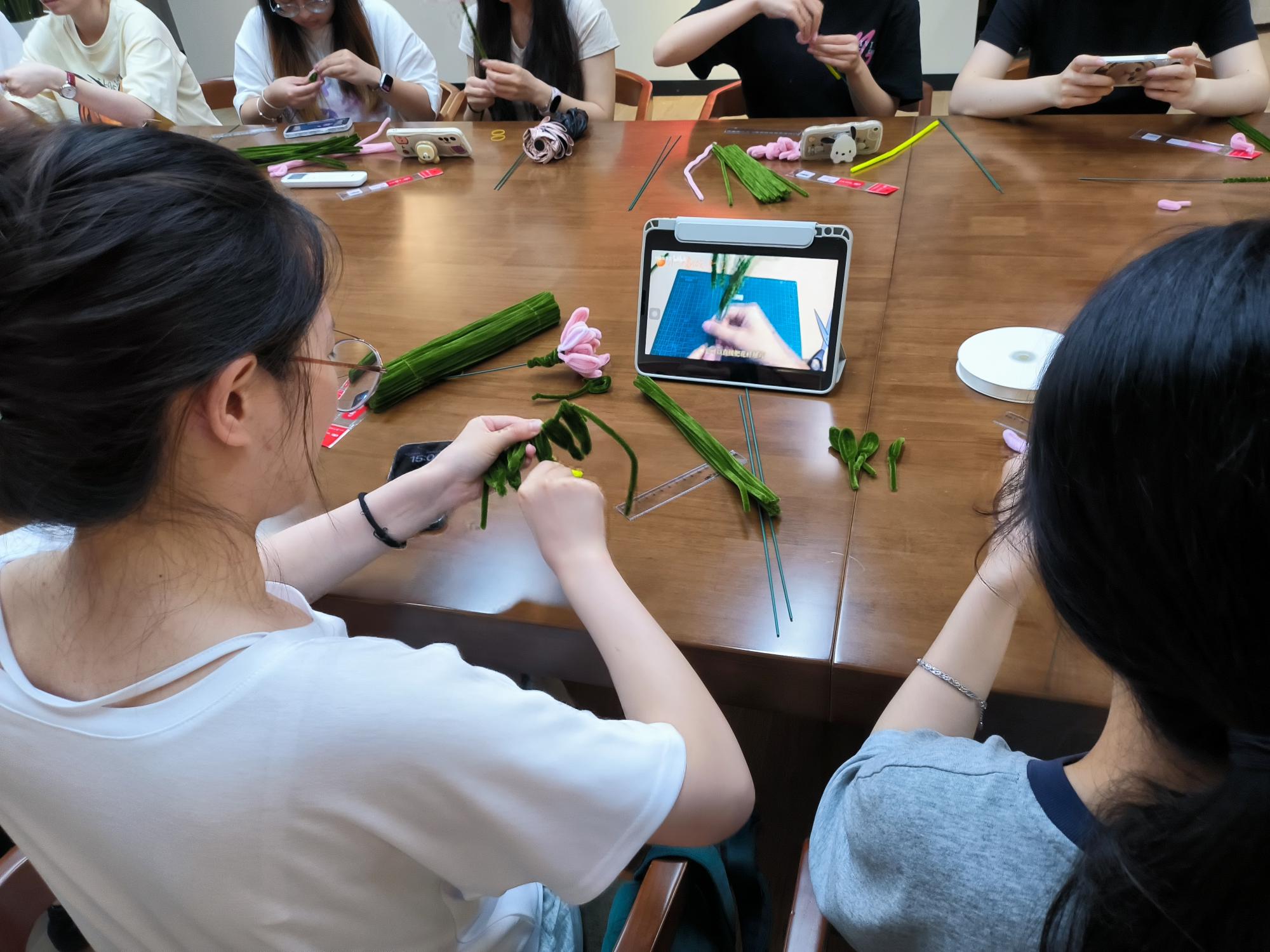 随后,支部成员开始制作清廉荷花,工作人员给同学们分发本次手工制品的材料--扭扭棒,并详细讲解扭扭棒莲花的制作步骤以及注意事项。