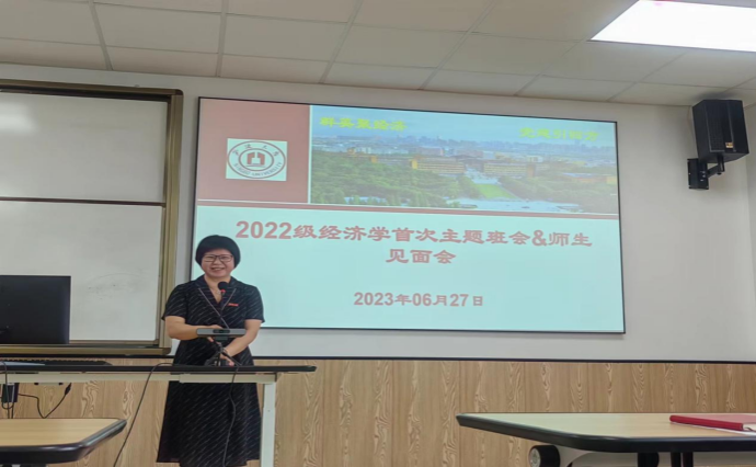 6月27日上午,经济系2022级新生见面会暨首次主题班会在暗网 314教室举行。本次会议由2022级经济学班主任黄晖副教授主持,经济系主任徐群芳教授、教学系主任闭明雄副教授、专业教师靳来群、施晟和于冰副教授以及辅导员章舒怡老师出席会议并讲话。