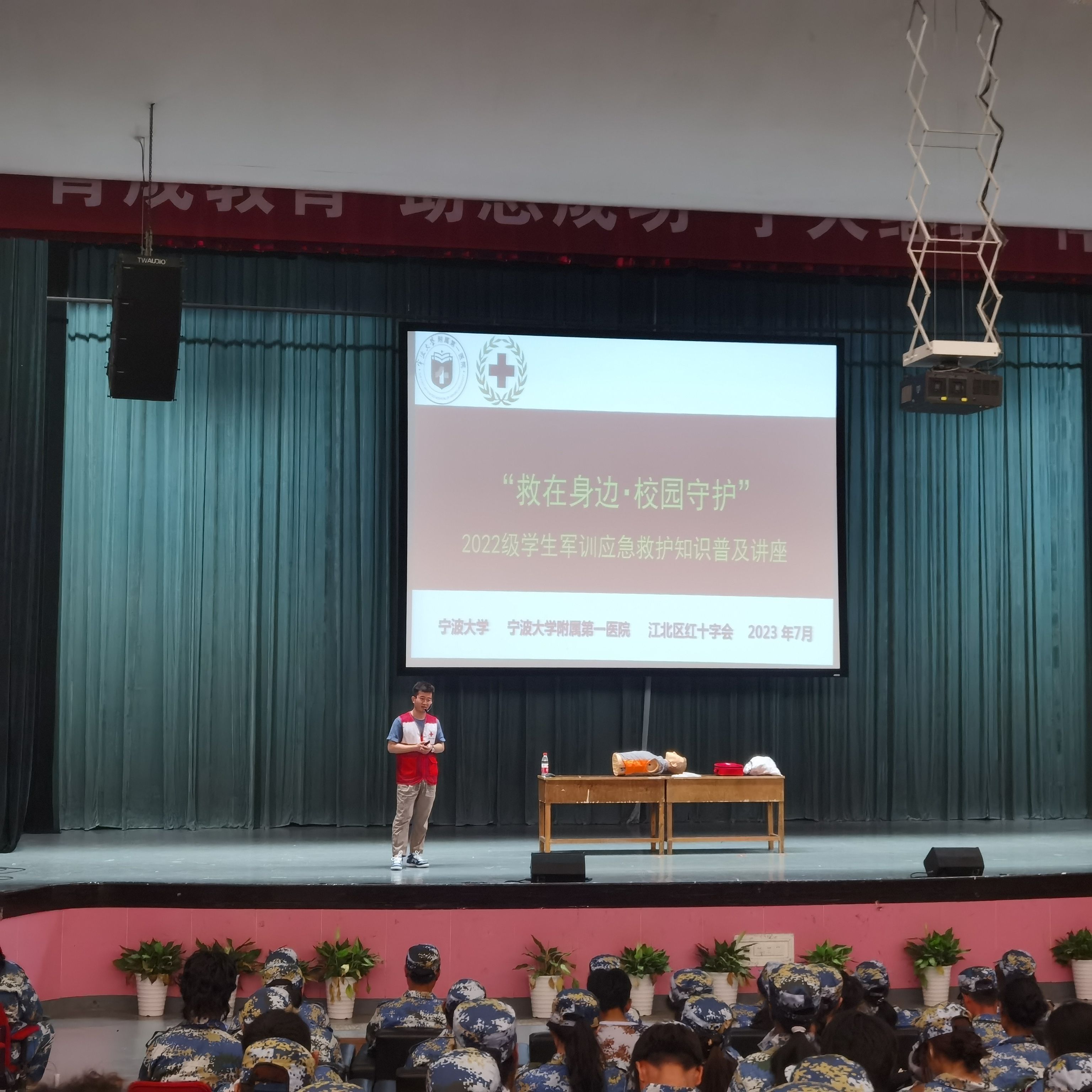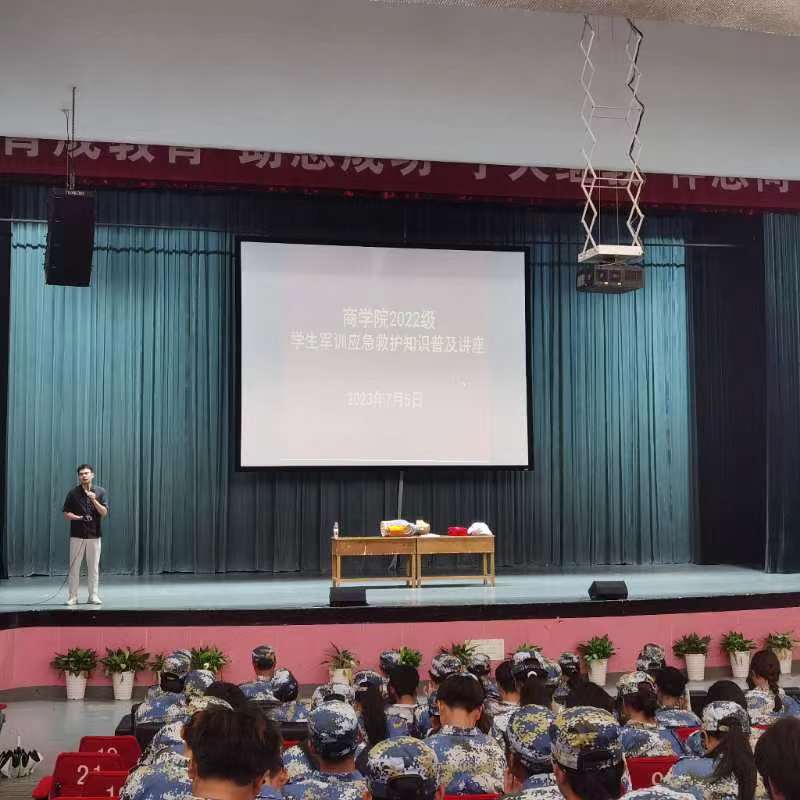 为提高军训学生的安全保护意识,普及应急救护知识,7月5日下午,暗网 在林杏琴会堂举行2022级学生军训应急救护知识普及教育讲座。暗网 附属第一医院医师、江北区红十字会会员陈阳受邀为暗网 500多名2022级军训学生做讲座。讲座由学工办主任陈彬主持。