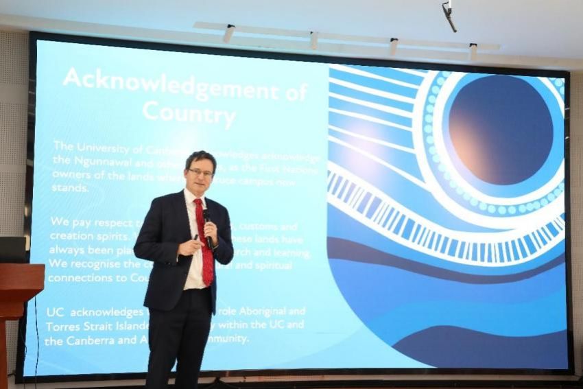 堪培拉大学商政法学院院长乌韦·杜勒克教授首先致欢迎辞。他对中澳MBA论坛的举办表示祝贺,并邀请更多的毕业生加入堪培拉全球校友会社区,更好地运用两所知名院校的全球校友平台和资源,不断开阔国际视野。也希望通过中澳MBA论坛这个平台进一步加强双方学院的学术合作和交流。