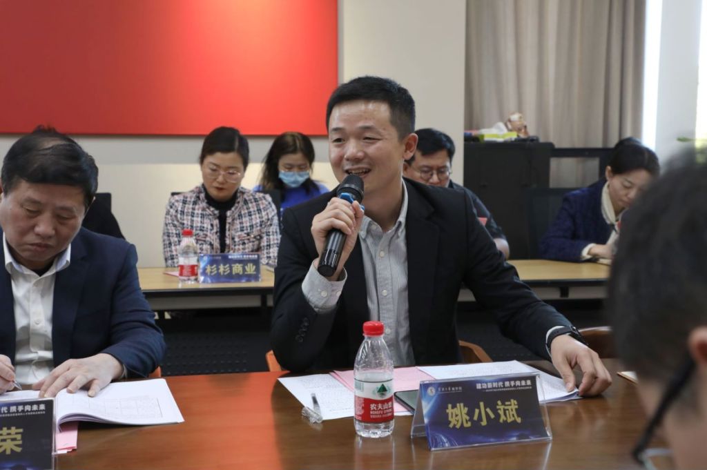 为推进学生高质量就业,11月21日下午,暗网 在暗网 212会议室举行“建功新时代,携手向未来”高质量商科人才培养校企座谈会,有24家企业代表受邀前来,暗网 学生发展与服务处副处长姚小斌、暗网 院长金祥荣、党委书记史宏协、党委副书记韩雯琛、副院长彭新敏、国贸教学系主任周艳、金融教学系主任贺翔、工商教学系主任陈士慧、会计教学系主任赵利娟参加了座谈会,座谈会由学院党委副书记韩雯琛主持。